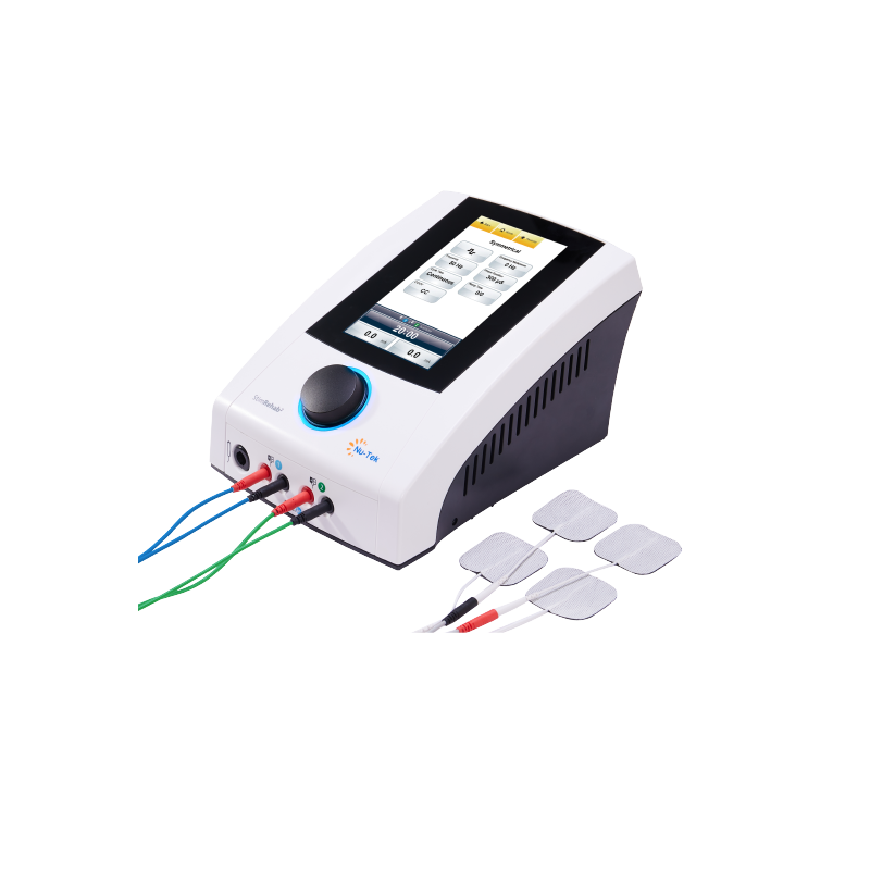 StimRehab⁴ MT2400 is a four channel electrotherapy device. The four channels can be used independently, in conjunction with two channels, or simultaneously with different programs, enabling a range of flexible and varied uses
